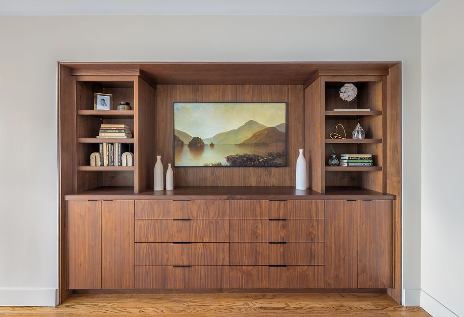 We kept the original envelope of the home the same. We made no structural changes instead we focused on small changes that provided maximum visual impact. We kept all the original interior doors and reglet trim. We painted all the door black for contrast. We kept as much of the mahogany casework that was original to the home as possible.